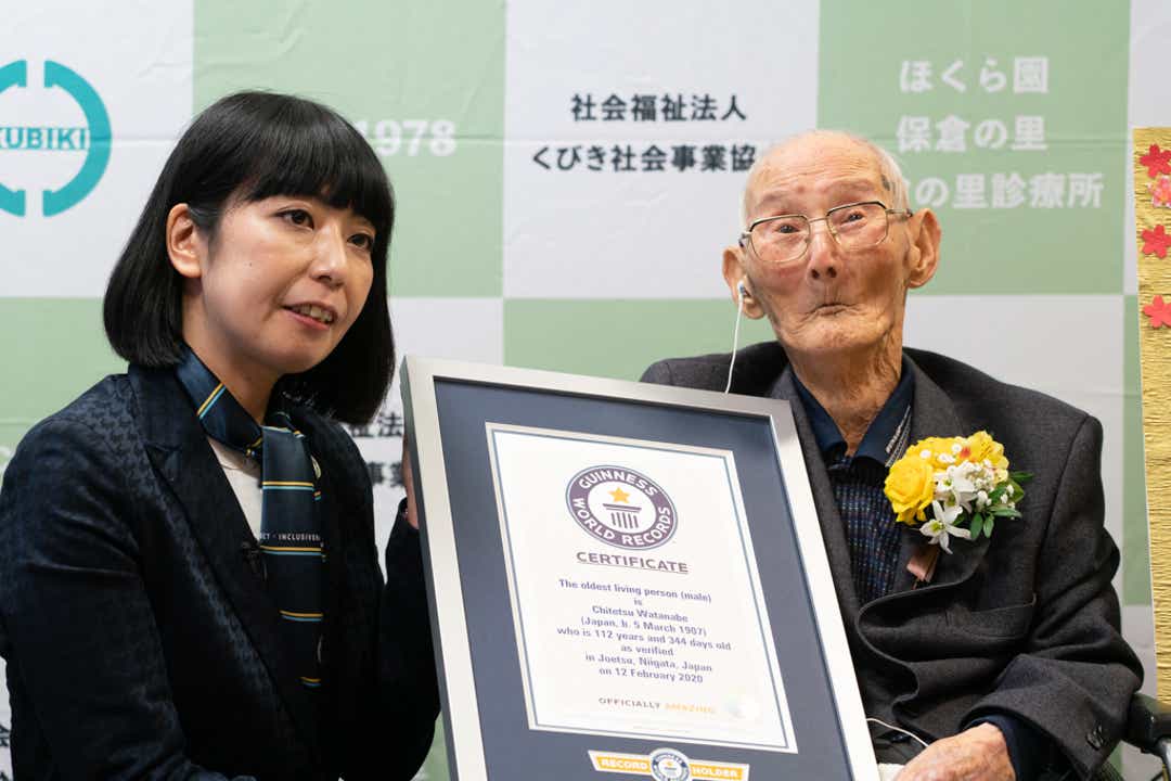 Watanabe was presented with the official certificate Wednesday by Guinness World Records Japan’s Country manager Kaoru Ishikawa at his nursing home in Niigata, his hometown.