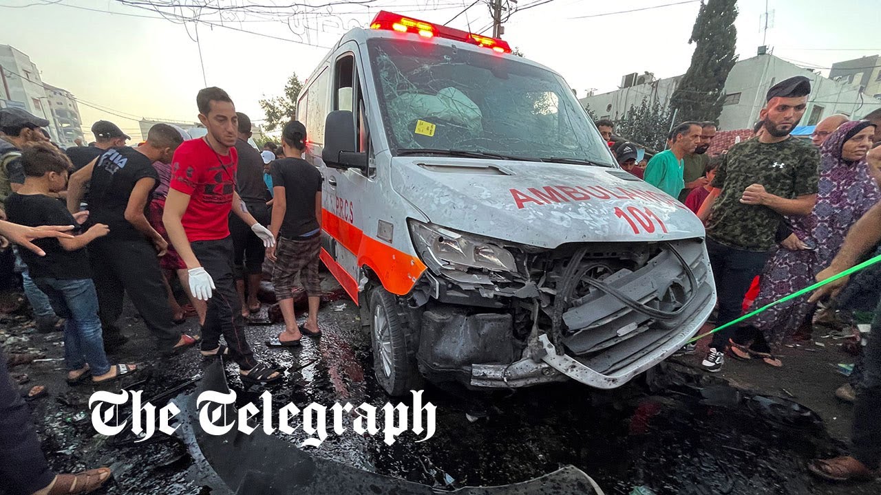 It comes as an ambulance was struck outside Gaza’s largest hospital, al-Shifa, in Gaza City. The health ministry in the Hamas-run strip said that it was part of a convoy that was seeking to evacuate the wounded from northern Gaza to the south and that “several citizens were killed and dozens wounded”.